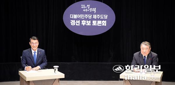 11일 열린 더불어민주당 제주도지사 경선후보 TV 토론회에서 설전을 이어가던 김우남 예비후보와 문대림 예비후보는 원희룡 도정에 대해선 한 목소리로 비판했다. 두 후보는 "이번 선거에서 반드시 원희룡 도지사를 심판해 실익을 취해야 한다"며 도민들에게 엄중한 평가를 부탁했다.