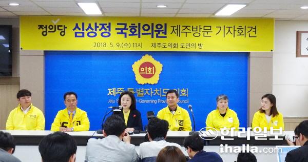 정의당 제주도당은 9일 제주도의회 도민의방에서 심상정 국회의원 제주방문 기자회견을 개최했다.