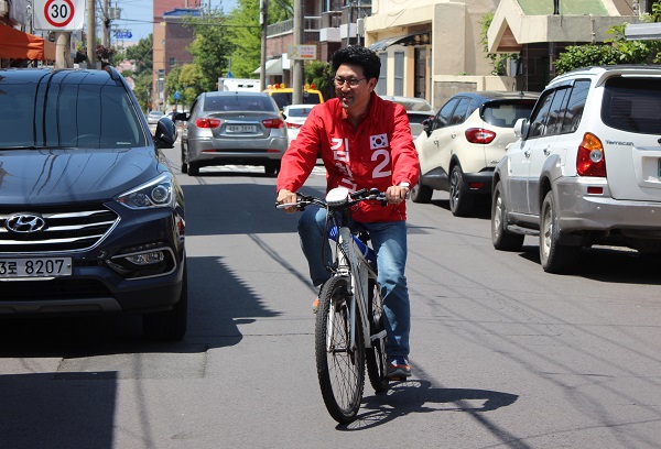 김 예비후보는 "자전거로 다니다보면 지나가는 많은 유권자께서 특이한 컨셉 때문인지 많이들 알아봐주시고, 격려해 주신다"면서 "두바퀴 경청투어로, 2배 열심히 달려 당선으로 주민들의 성원에 보답하겠다"라고 다짐했다.