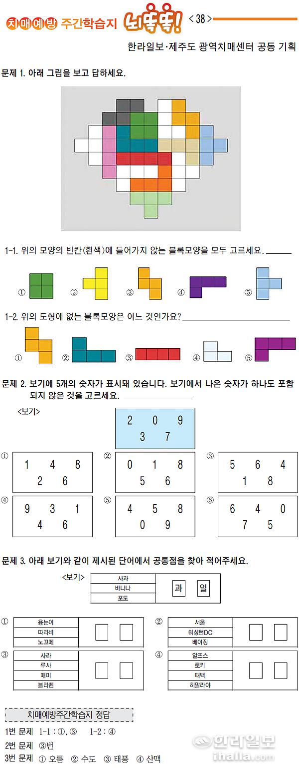 [치매예방주간학습지 뇌똑똑](38)