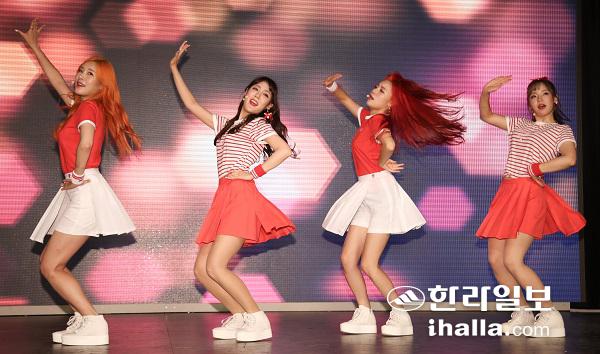 걸그룹 플래쉬가 3일 오후 서울 강남구 압구정동 강남관광정보센터 케이홀에서 열린 미니앨범 '베이비로션' 미디어쇼케이스에서 신곡 무대를 선보이고 있다.(사진 위) 걸그룹 플래쉬의 예린이 3일 오후 서울 강남구 압구정동 강남관광정보센터 케이홀에서 열린 미니앨범 '베이비로션' 미디어쇼케이스에서 포즈를 취하고 있다.(사진 아래) 연합뉴스