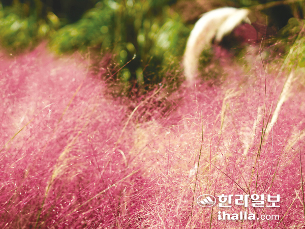 서귀포시 남원읍에 있는 휴애리 자연생활공은 지금 분홍빛으로 물들었다. 공원 측은 몽환적인 분홍빛을 뽐내는 핑크뮬리 축제를 오는 20일까지 진행한다. 정원 곳곳에 다양한 포토존을 설치해 셀프 웨딩사진과 우정사진, 가족사진 등을 찍을 수 있게 했다. 또 맨발로 제주화산송이 올레길 걷기, 제주마 타기 등 체험 프로그램도 준비했다.