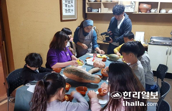 | 아이들이 향토음식을 만들고 있는 모습. 사진=어멍아방농촌유학협동조합 제공 |