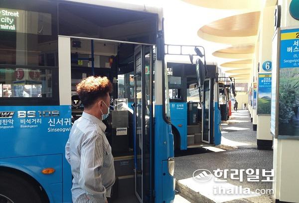 제주시터미널에서는 항상 대중교통버스를 대기시켜 도내 각 노선으로 찾아가는 승객을 위해 승차편의를 제공하고 있다.