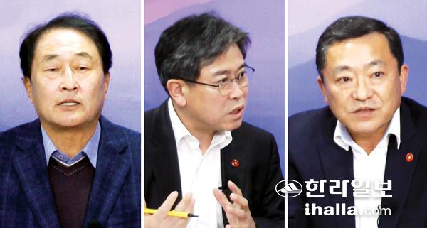 왼쪽부터 송창우 제주와미래연구원 원장, 현길호 제주도의회 농수축경제위원장, 전병화 제주도 농축산식품국장.