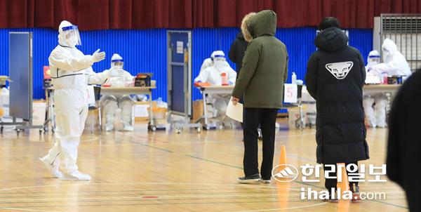 제주자치도는 이날 오전 10시부터 대기고 체육관에 선별진료소를 설치, 교직원과 재학생 등 400여명을 대상으로 진단검사를 실시했다.