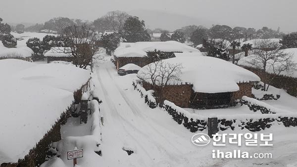 폭설 내리는 성읍민속마을 전경. 강희만기자