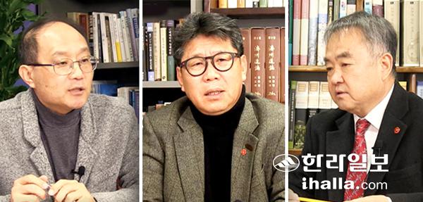 왼쪽부터 김태일 제주대학교 건축학과 교수, 박경훈 제주와미래연구원 기획위원장, 송재호 국회의원.