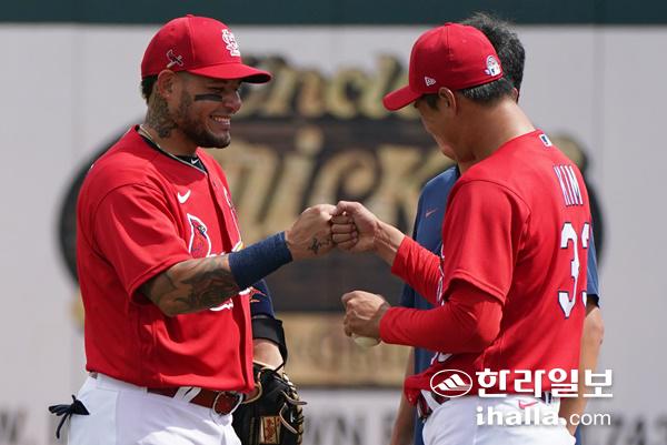 세인트루이스 몰리나(왼쪽)와 김광현. 연합뉴스