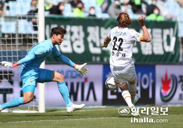 '정우재 선제골' 제주 전주성 함락 코앞인데.. '아쉽다'