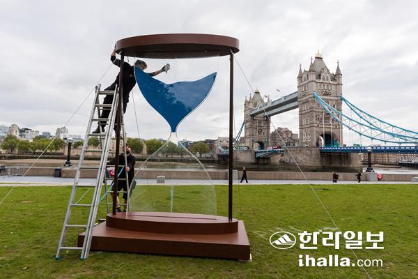 타워브리지 앞 '기후위기' 모래시계