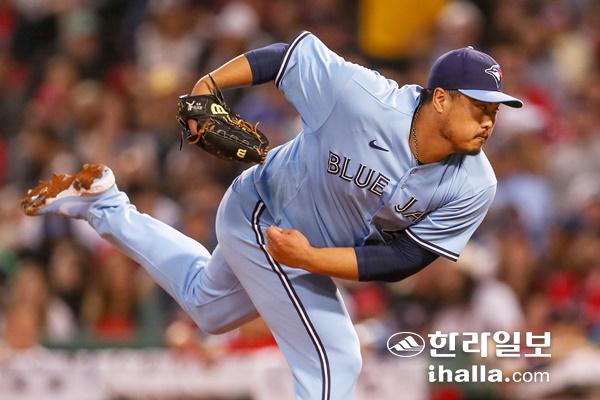 보스턴전에서 역투하는 토론토 류현진. 연합뉴스