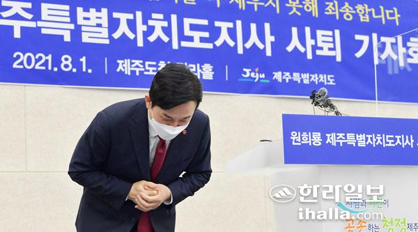 1일 도지사직 사임을 발표하는 원희료 지사. 한라일보DB