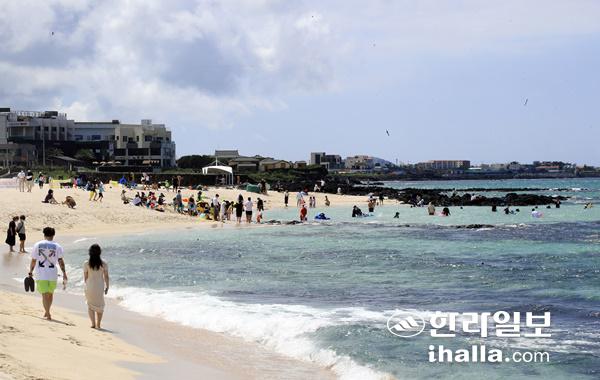 28일 제주시 애월읍 곽지해수욕장을 찾은 피서객들이 물놀이를 즐기고 있다. 연합뉴스
