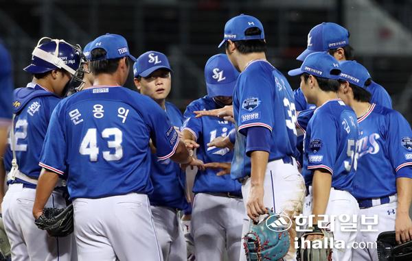 승리의 기쁨 나누는 삼성 라이온즈 선수들. 연합뉴스