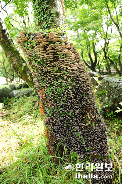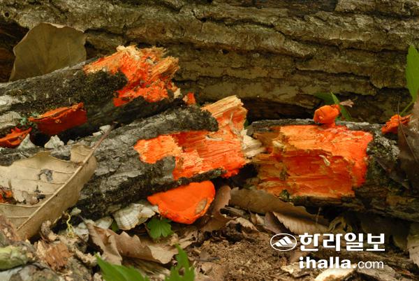 ▶흑색부후균이라고?=한라산이나 또는 곶자왈을 다니다가 불에 그을린 듯한 나무를 본 적이 있는가? 그 속에는 나무를 분해하는 과정에서 검은색 효소를 방출하는 버섯류가 살고 있다. 나무는 시간이 흐를수록 분해돼 가면서 검게 변해간다. 하지만 리그닌까지 분해하는 백색부후균에 분류된다. 겉으로 보이는 색에 연연하지 말자. 그들의 기능이 분류 포인트다.