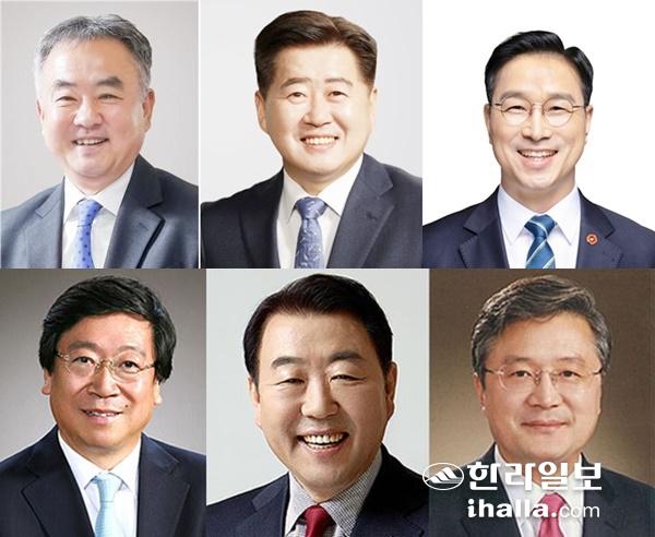 내년 지방선거에 제주지사 후보 거론되는 후보들중 각당 대선캠프에서 활동하고 있는 송재호 오영훈 위성곤 국회의원과 장성철 전위원장, 김방훈 전부지사, 고경실 전제주시장(왼쪽으로 시계방향).