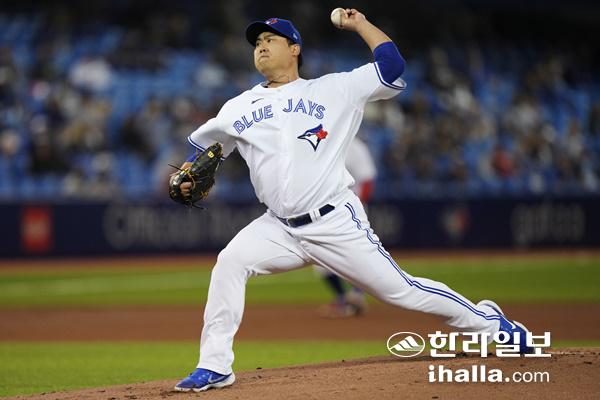 토론토 블루제이스 왼손 선발 류현진이 29일(한국시간) 캐나다 온타리오주 토론토의 로저스센터에서 열린 미국 메이저리그 뉴욕 양키스와의 홈경기에 선발 등판해 역투하고 있다. 연합뉴스