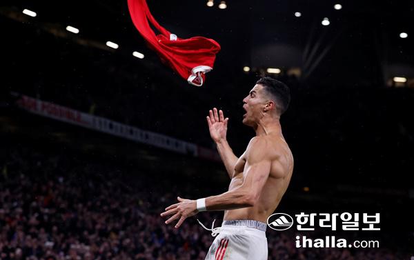 유니폼 상의를 던지며 골세리머니를 펼치는 크리스티아누 호날두. 연합뉴스
