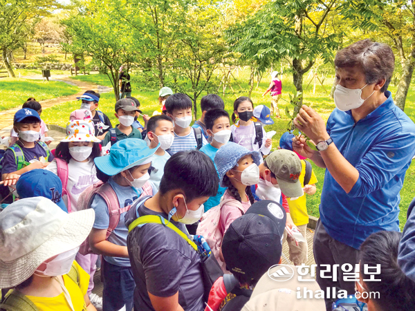 지난 5일 제주시 용강동 한라생태숲에서는 제주도교육청과 한라일보가 함께하는 '2021 숲길 체험 프로그램'이 진행됐다.