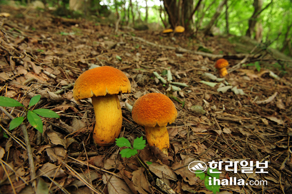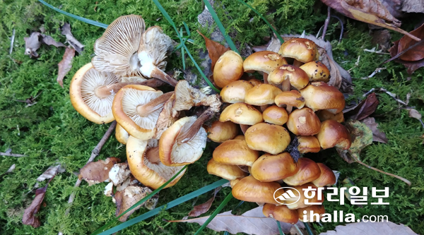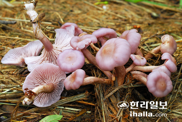 ▶다발왕송이=다발왕송이는 흔한 버섯이 아니다. 열대성버섯으로 알려져 있어서 발생 시 아주 높은 온도를 요구한다. 그래서 하우스 안이나 퇴비를 발효시키는 곳에서 열이 발생할 때, 특히 제주에서만 종종 발견된다. 잘 성장하면 여자 어른의 팔뚝만 한 굵기로 성장하고 다발을 형성하는 특징 때문에 한번 발생하면 수십 킬로그램까지 채취가 가능한 버섯이다. 최근에는 돈내코 인근 야생에서 발견되기도 해 제주도의 날씨가 더워지고 있음을 입증하고 있기도 하다. 새송이처럼 육질이 단단하고 쫄깃해 고기와 함께 구워 먹으면 맛있다. 다만 어린 버섯에서 시안성분이 검출괘 식탈이 난 예가 보고되고 있기 때문에 식용 시 주의를 요한다.