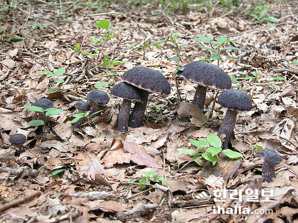 ▶흑자색그물버섯=버섯갓의 지름은 5~10㎝로 반구형에서 둥근 산 모양이 되었다가 차차 편평해진다. 표면은 다소 오돌토돌하나 매끄럽고 습기가 있으면 끈적기가 조금 있다. 살은 두껍고 백색이며 단단하다가 연해진다. 관공은 초기에 백색이나 황색을 거쳐 황갈색으로 된다. 자루도 갓과 같은 색이며 백색의 긴 그물 무늬가 있다. 여름에서 가을 사이에 주로 활엽수림의 땅에 발생한다. 갓이 펼쳐지지 않은 어린 버섯일 때 맛이 있다. 살짝 데쳐 먹거나 고기와 구워 먹으면 식감이 부드럽고 촉촉하다.