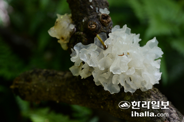 ▶흰목이=봄부터 가을 사이에 활엽수의 죽은 가지에 주로 발생한다. 크기는 3~10㎝, 자실체는 순백색이며 습할 때는 투명한 젤리 같은 젤라틴질이고, 건조하면 오므라들며 단단해진다.