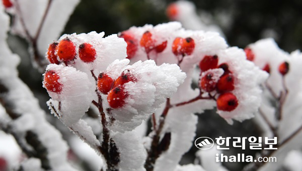 겨울을 재촉하는 비가 내린 후 찬 공기가 내려오면서 제주 한라산에 첫눈이 관측됐다.