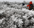 | 9일 제주 산지에 대설주의보가 내려진 가운데 한라산 1100고지를 찾은 관광객들이 쌓인 눈을 배경으로 기념사진을 찍으며 첫눈을 만끽하고 있다. 이상국 기자 |