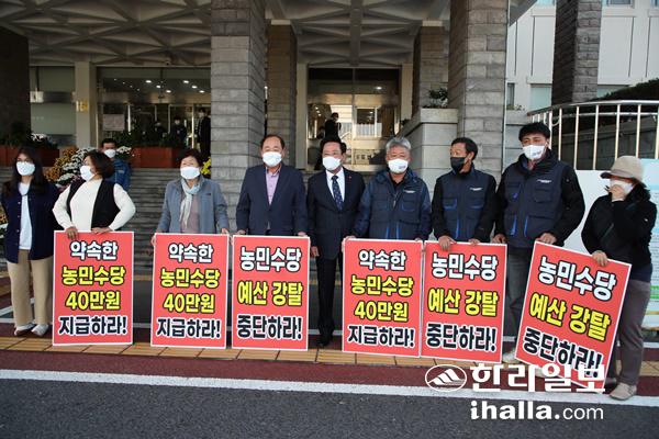 "제주농민수당 40만원 약속 지켜라"