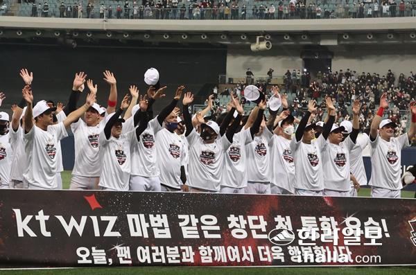 프로야구 막내 구단 kt wiz가 창단 8년 만에 처음으로 한국시리즈를 제패했다.