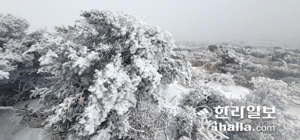 [기사수정:1일 오후 5시50분] 대설특보가 내려지면 한라산에 많은 눈이 쌓였다.