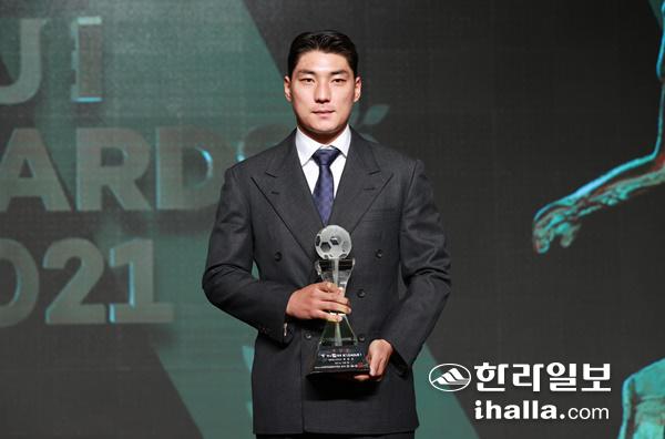 주민규는 7일 서울 서대문구 스위스그랜드호텔에서 열린 '하나원큐 K리그1 2021 대상 시상식'에서 최다득점상을 받았고, 시즌 베스트11 공격수 부문에도 선정돼 2관왕의 기쁨을 누렸다.
