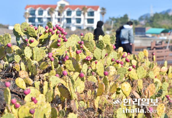 6일 오전 제주시 한림읍 월령리 선인장군락에 붉은 열매가 가득 열려 오가는 이들의 눈길을 끌고 있다.