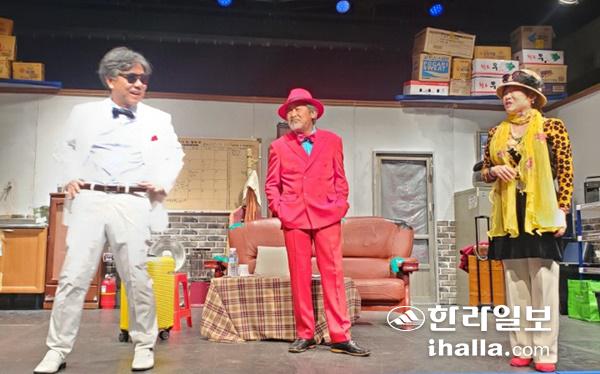지난달 한라아트홀에서 공연된 극단 가람의 '언덕을 넘어서 가자'. 원로 배우 최종원과 제주 배우들이 호흡을 맞췄다. 사진=극단 가람