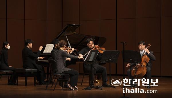 제주국제실내악페스티벌 메인 공연 셋째 날인 지난 22일 김다미·김덕우·김상진·이강호·김태형이 수크의 '피아노 5중주'를 연주하고 있다. 사진=제주아트센터