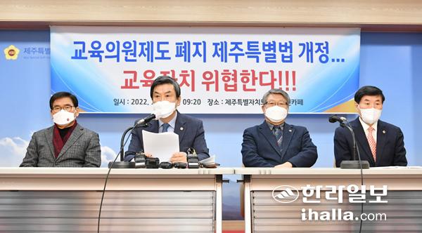 제주자치도의회 교육의원들의 교육의원 제도 반대 기자회견.