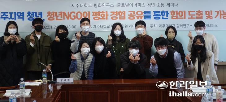 제주에서 다양한 삶의 방식으로 '평화'를 꿈꾸는 청년들이 한자리에 모였다. 제주대학교 평화연구소와 글로벌이너피스 공동 주최로 지난 28일 오후 1시 제주대 행정대학원 세미나실에서 열린 '청년 소통 세미나'다.