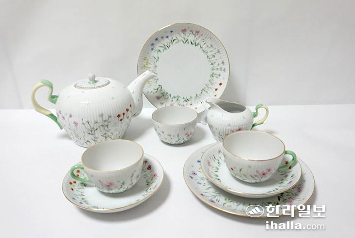박천주의 들꽃 커피 세트 포슬린 페인팅. 사진=심헌갤러리 제공