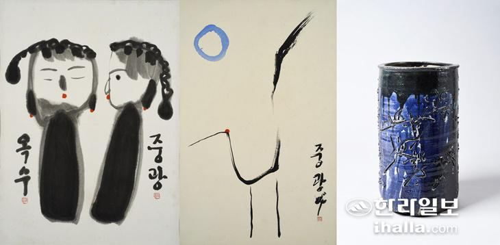 지난해 제주도가 기증받은 중광 작품 일부. 왼쪽부터 '중광-옥수', '학', '난향'.