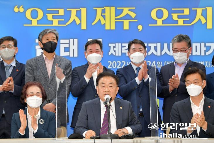 이어 "2022년 제주도지사 선거는 제주판 3김 시대와 외부에서 수혈된 지사 8년의 시간에 종지부를 찍는 선거다. 즉 그들만의 리그와 엘리트 정치에 종지부를 찍는 선거"라며 "제주가 겪고 있는 문제과 과제를 오랜 시간 고민해 온 제주 사람이, 제주 정치의 주역을 거듭나는 선거여야 한다"고 강조했다.