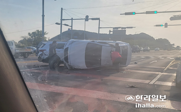 사고를 목격한 시민들은 충돌 충격으로 뒤집어진 소나타 차량 운전자를 구조했으며, 이후 도착한 119에 의해 병원으로 옮겨졌다고 설명했다.