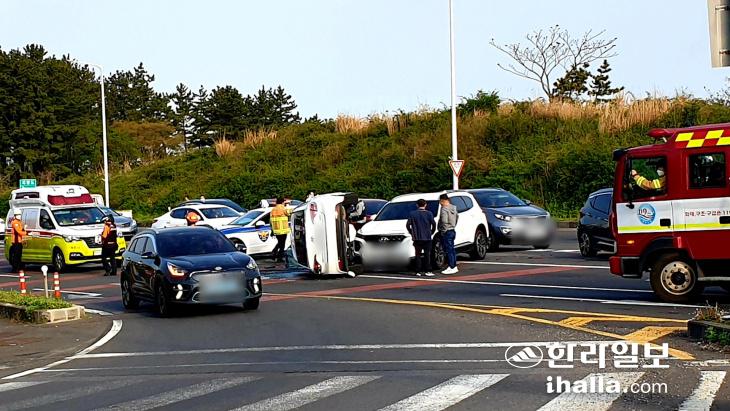 출근길 제주 번영로 남조로 검문소에서 교통사고가 발생했다.