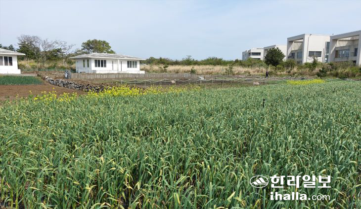 | 행복공작소 내에 운영 중인 행복농장에서 마늘이 자라고 있다. |