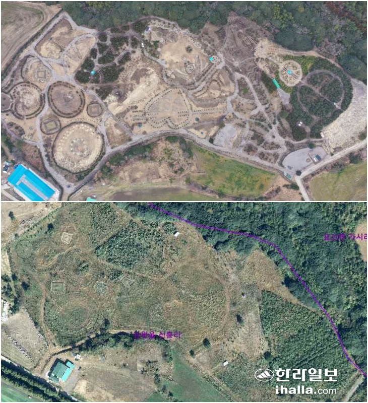 | 관광농원을 개발하기 위해 A씨가 무단 훼손한 임야(사진 위)와 훼손되기 전 모습. 사진=제주도 자치경찰단 |
