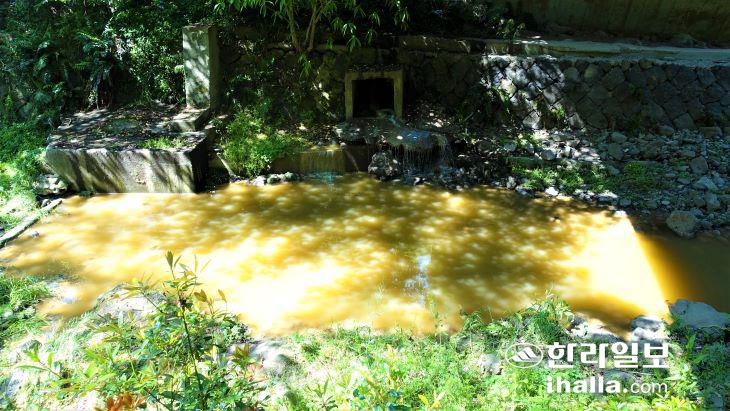 3일 오전 제주시 이도1동 신산공원 인근 삼신교 아래 산지천에는 정체불명의 황토색 물이 고여 있었다.