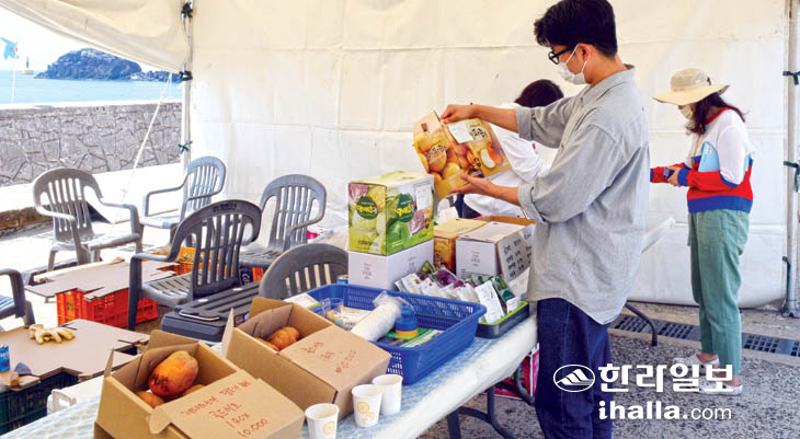 올해는 '수월한 영수증 이벤트'가 처음 마련되는 등 참여 행사도 풍성하다. '수월한 영수증'은 수월봉 행사장 내 고추장, 소라꼬치 등 마을 특산물 판매 부스를 포함 고산리와 용수리 상가에서 5000원 이상 구매한 영수증을 제시하면 기념품을 제공하는 이벤트다. 7일에도 해당 이벤트에 참여하는 방문객들의 발길이 꾸준히 이어지는 모습이었다. 주최 측에서 제공하는 친환경 봉지에 플라스틱을 담아오면 기념품을 주는 '플라스틱 없지오(GEO) 이벤트', 행사장 내 포토존 인증샷 SNS 이벤트 등도 진행되고 있다. 고산리 선사유적 체험 부스, 지속가능발전협의회의 탄소 중립 생활 실천 이벤트 부스도 설치됐다.