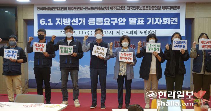 제주지역 농민과 노동자들이 정치권을 향해 '6·1 지방선거 공통 정책 요구안'을 발표하며 적극적인 반영을 촉구했다.