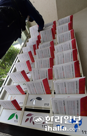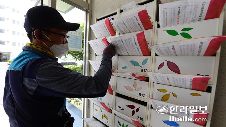 "아라동은 22일 오후에 우편취급국에 공보물이 왔는데, 23일 새벽 2시까지 배달지역을 분류하는 작업을 진행했습니다. 일요일에 배달을 하면 가장 좋은데, 등기가 섞이는 평일에는 아무래도 힘에 부칠 때가 있어요."