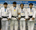 | 13세 이하부 여자 -57㎏급 결승전에서 한판승으로 금메달을 따낸 곽유주(동남초 6, 왼쪽에서 두번째). |